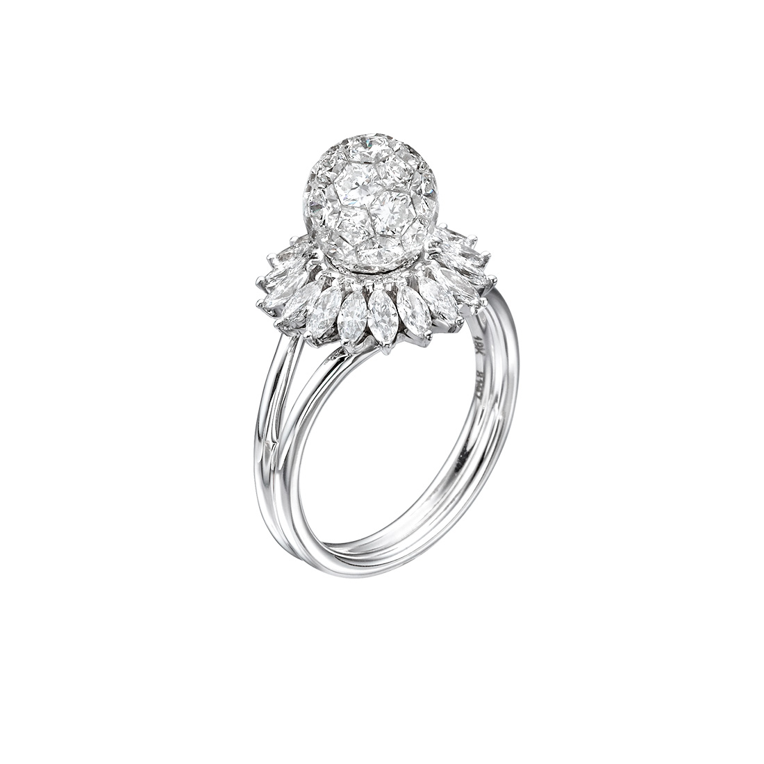 18K 白金,钻石,隐秘式镶嵌,配件可拆卸